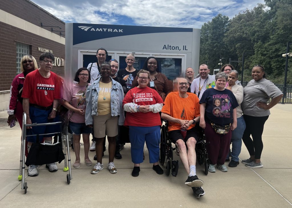 ALL ABOARD! RO Residents at the Alton, IL Amtrak Station preparing to travel to Bloomington, IL for the Speak Up and Speak Out Summit
